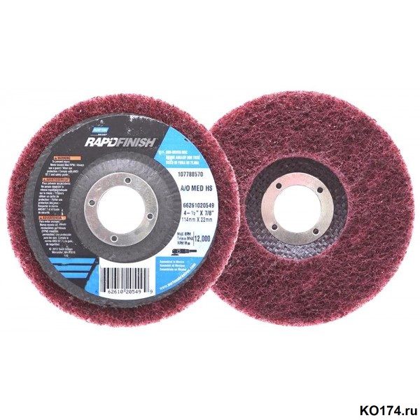 Круг шлифовальный 115х22 Rapid Finish Norton из нетканого материала Beartex (аналог Скотч Брайт, компании 3М) для доводки или сатинирования металла. Благодаря открытой структуре материала, он не засаливается, что позволяет эффективно работать даже с алюминием.