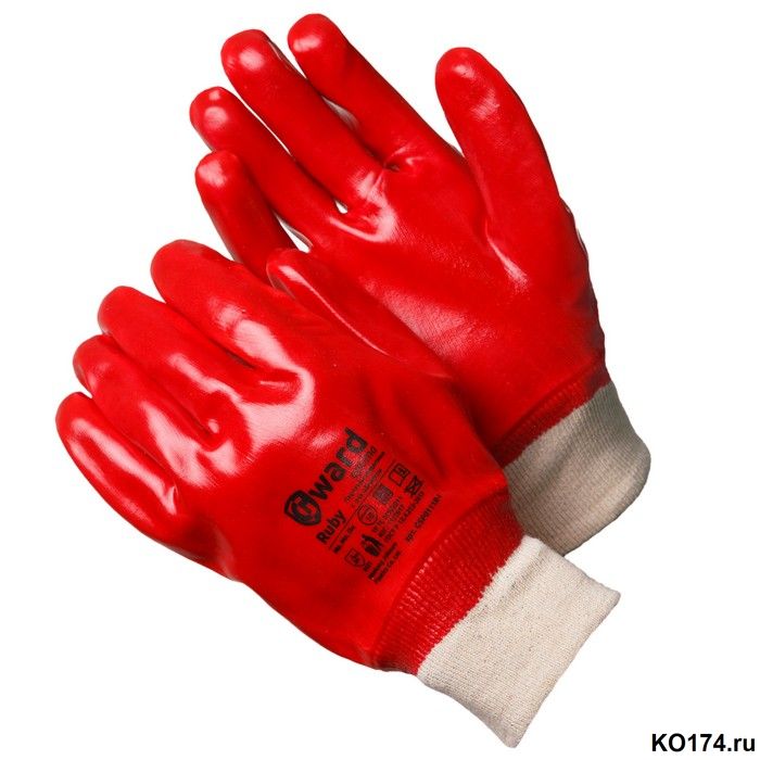 Перчатки с ПВХ покрытием Ruby, они же перчатки Гранат из вязаной хлопчатобумажной основы с антибактериальной пропиткой.