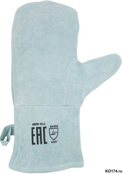 Широкая манжета позволяет быстро снять рукавицу при необходимости. Внутренние швы предотвращают прогорание нити, боковые петли на рукавицах помогут более удобно хранить изделие.