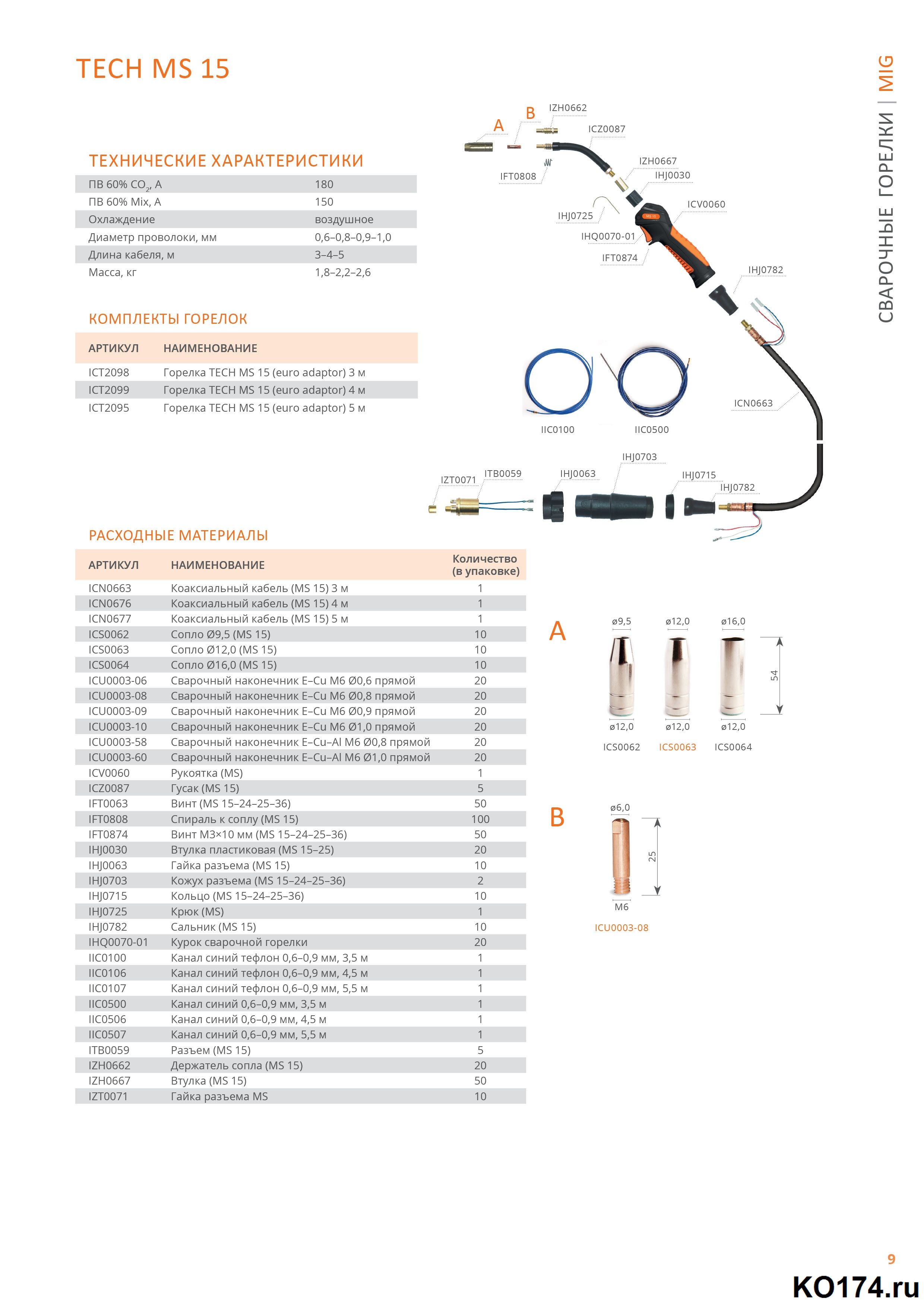 Сварочная горелка TECH MS 15 с воздушным охлаждением предназначена для полуавтоматической сварки в среде защитных газов (MIG/MAG). Горелка MIG TECH MS 15 имеет быстросъемное сопло, которое можно снять в пару движений.