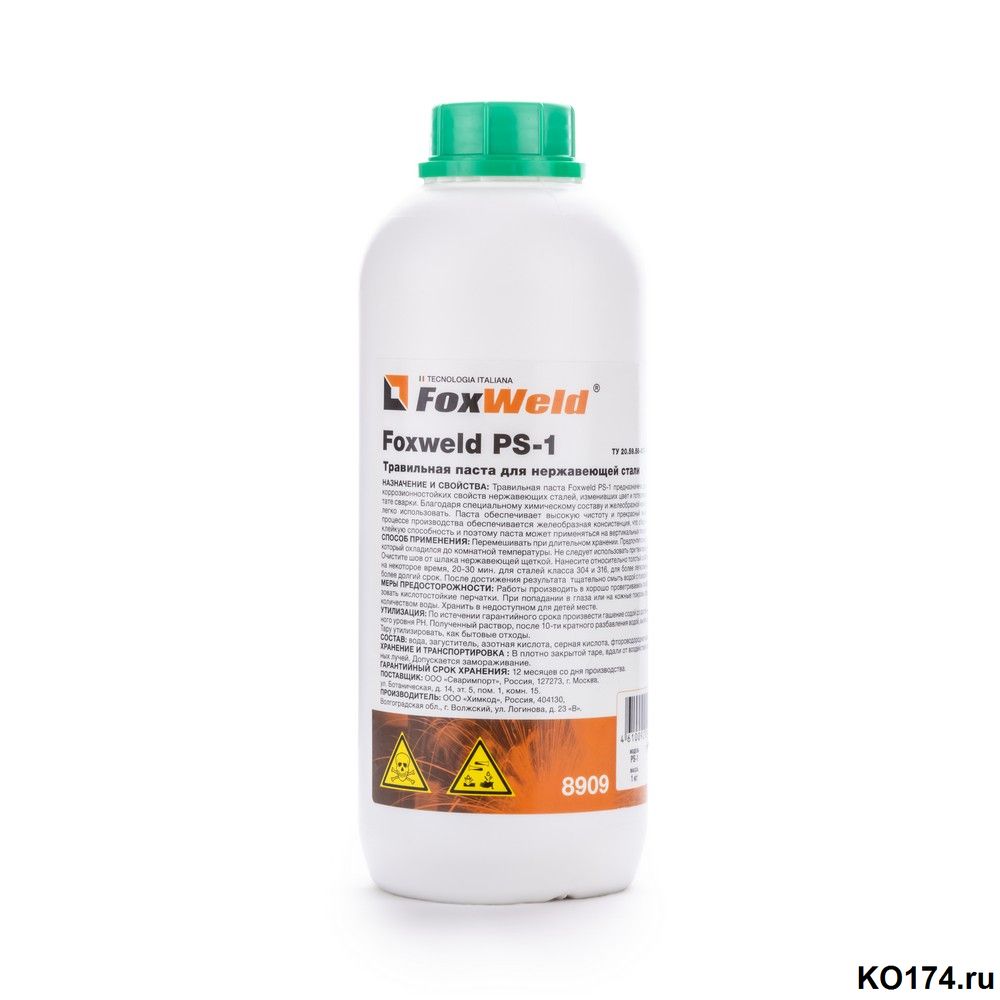 Травильная паста для нержавеющей стали Foxweld PS-1 предназначена для восстановления коррозионностойких свойств нержавеющих сталей, изменивших свой цвет и потерявших хром в результате сварки. Благодаря специальному хим. составу и желеобразной консистенции её очень легко использовать. Паста обеспечивает высокую чистоту и прекрасный внешний вид шва. Himkod Forsash в процессе производства обеспечивается желеобразная консистенция что обеспечивает хорошую клейкую способность и поэтому паста может применяться на вертикальных поверхностях.